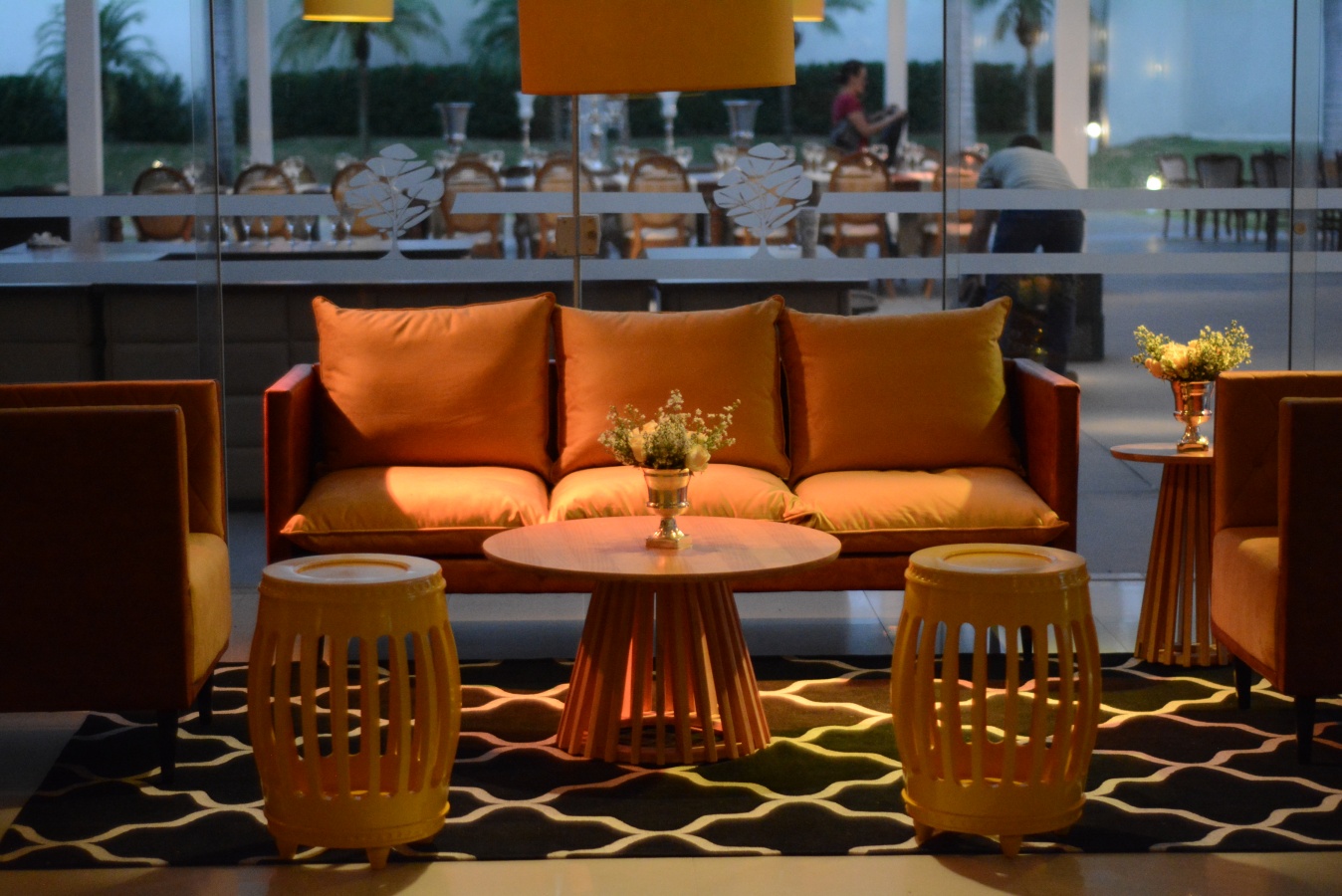 MESA ALBA - TAMPO MADEIRA MEL - BASE LACA VERDE